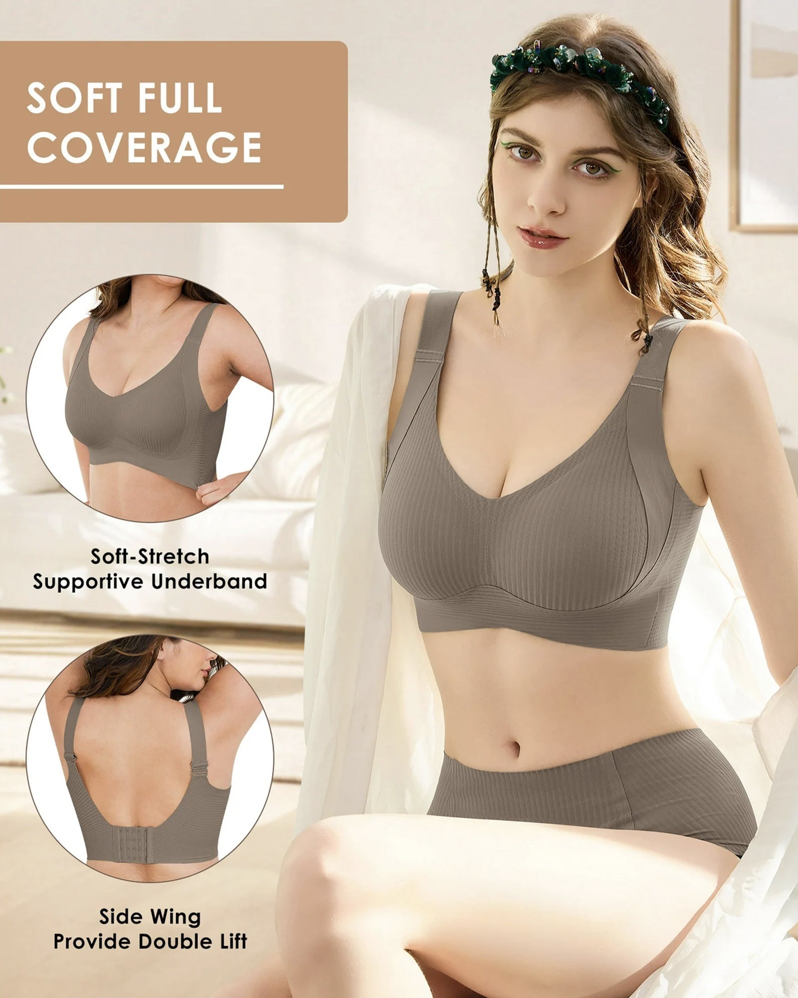 Natural chest support and gathering, widened side wings design, firmly wrap the side breasts, so that you can easily have a confident and upright posture. Elevate your wardrobe with the Weluxy bra, combining functionality and style for all your bra needs.