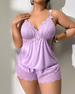 Effortless Design: Sleeveless cami top with a flattering spaghetti strap neckline and matching shorts for a playful, sexy look.