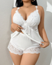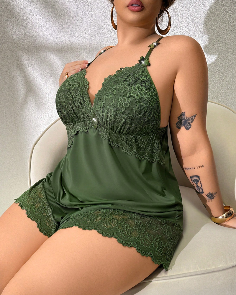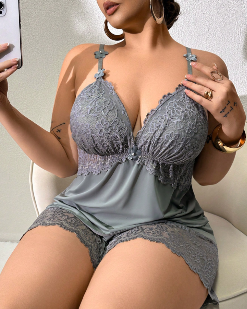 Slip into elegance and comfort with our Plus Size Lace Satin Cami Pajama Set, designed to make every night feel a little more luxurious. This two-piece sleepwear set combines silky-soft satin with delicate lace and 3D rose accents — a dreamy blend of sexy, feminine, and effortlessly chic style.