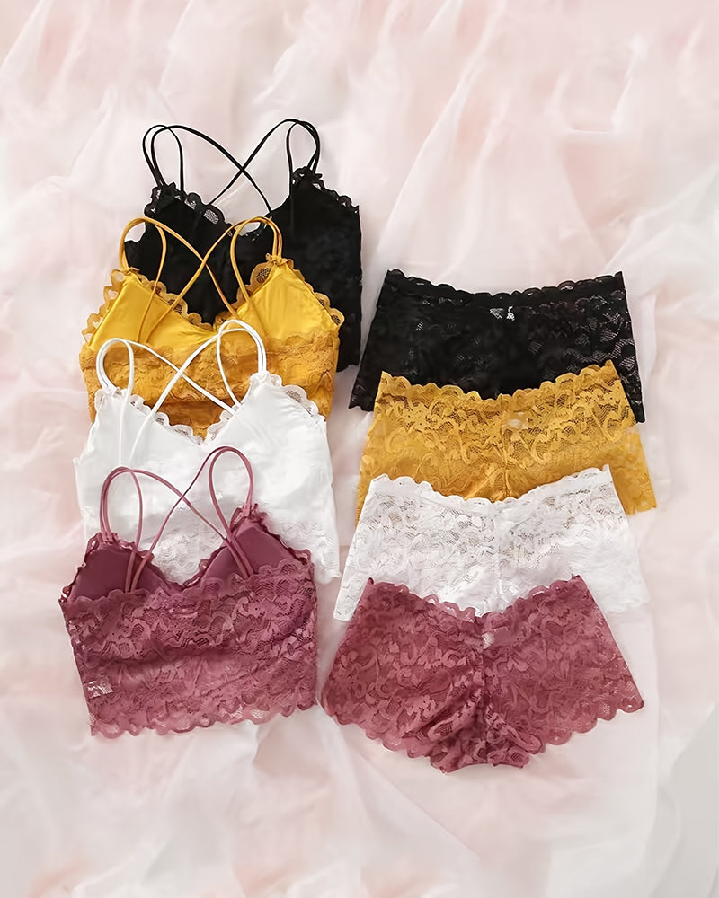 Lace Wireless Bra & Panty Set – 4-Piece Lingerie Basics